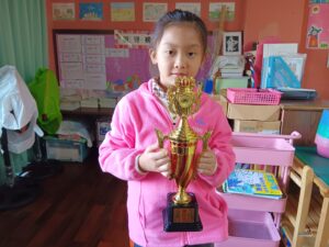 學生朝會頒獎2023 年 11 月 21 日 林冠妙今天學校頒發期中考前五名獎狀,本班這次榮獲前五名的是煜喆、宇桁、宥安、禹彤、宇芯,恭喜你們!希望大家期末考繼續努力! 學校今天還頒發閱讀小學士獎狀,這次領獎的是楷恩、煜喆、亮穎、宥安,這些小朋友都完成一百本書的記錄,很棒!