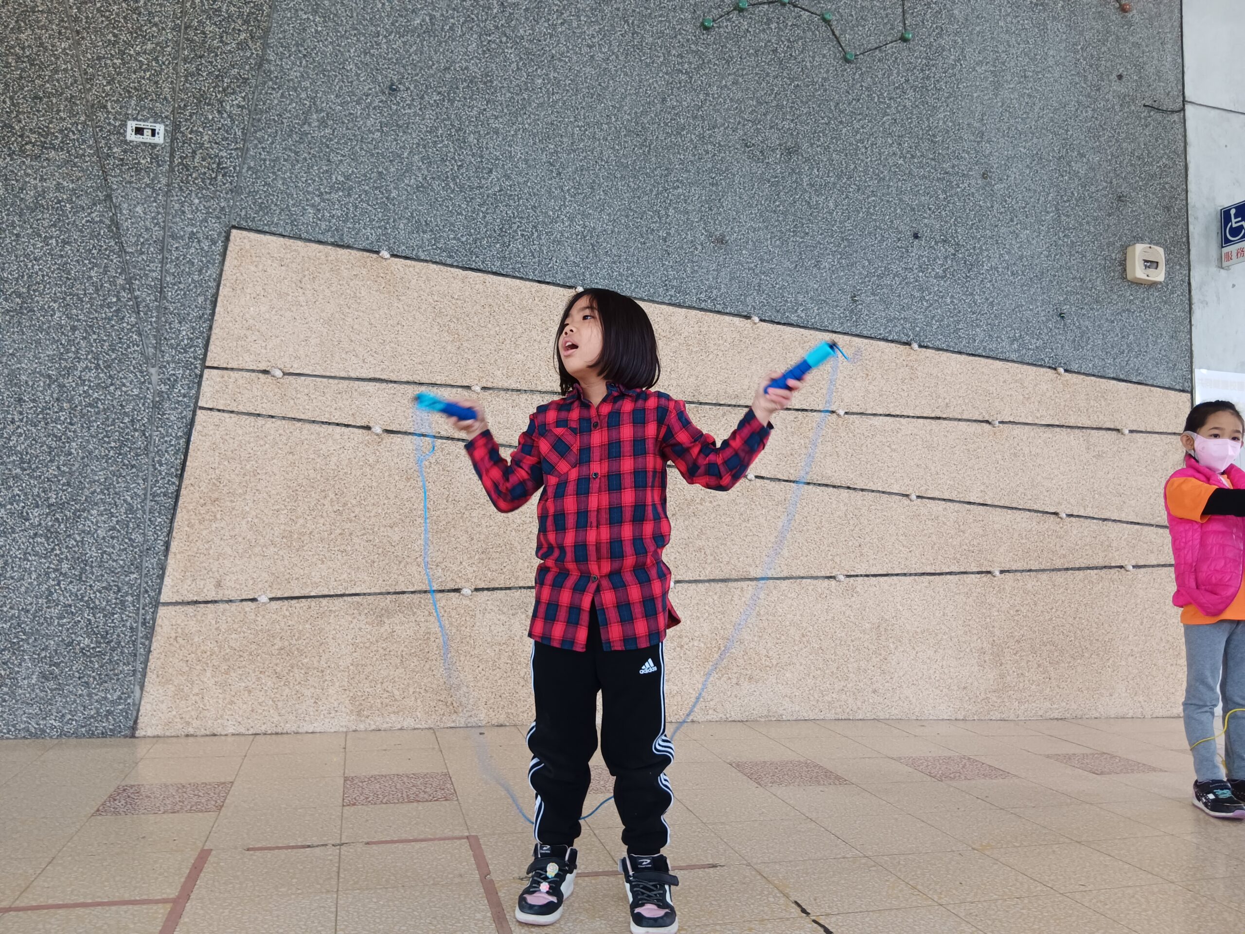 跳繩計時賽2023 年 12 月 1 日 林冠妙今天有一場刺激的跳繩比賽,二年級各班的小朋友輪流上台跳繩三十秒,由裁判計算跳的次數,各班跳最多下的六位小朋友可以領到個人獎狀喔!平時老師會規定小朋友下課練習完跳繩再休息,體育老師也會督促小朋友練習,今天算是成果發表。令老師高興的是,班上的小朋友幾乎都能很流暢的跳繩,,即使中途被繩子絆到,還是很努力的跳完三十秒,真有運動家精神!下週學生朝會會頒獎,班上哪六個小朋友可以得到獎狀呢?(由於小朋友跳繩的速度實在太快了,老師的手機來不及捕捉瞬間的動作,所以有些小朋友的照片有些模糊,真是抱歉啊!)