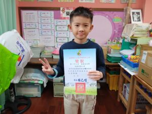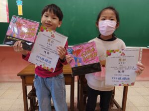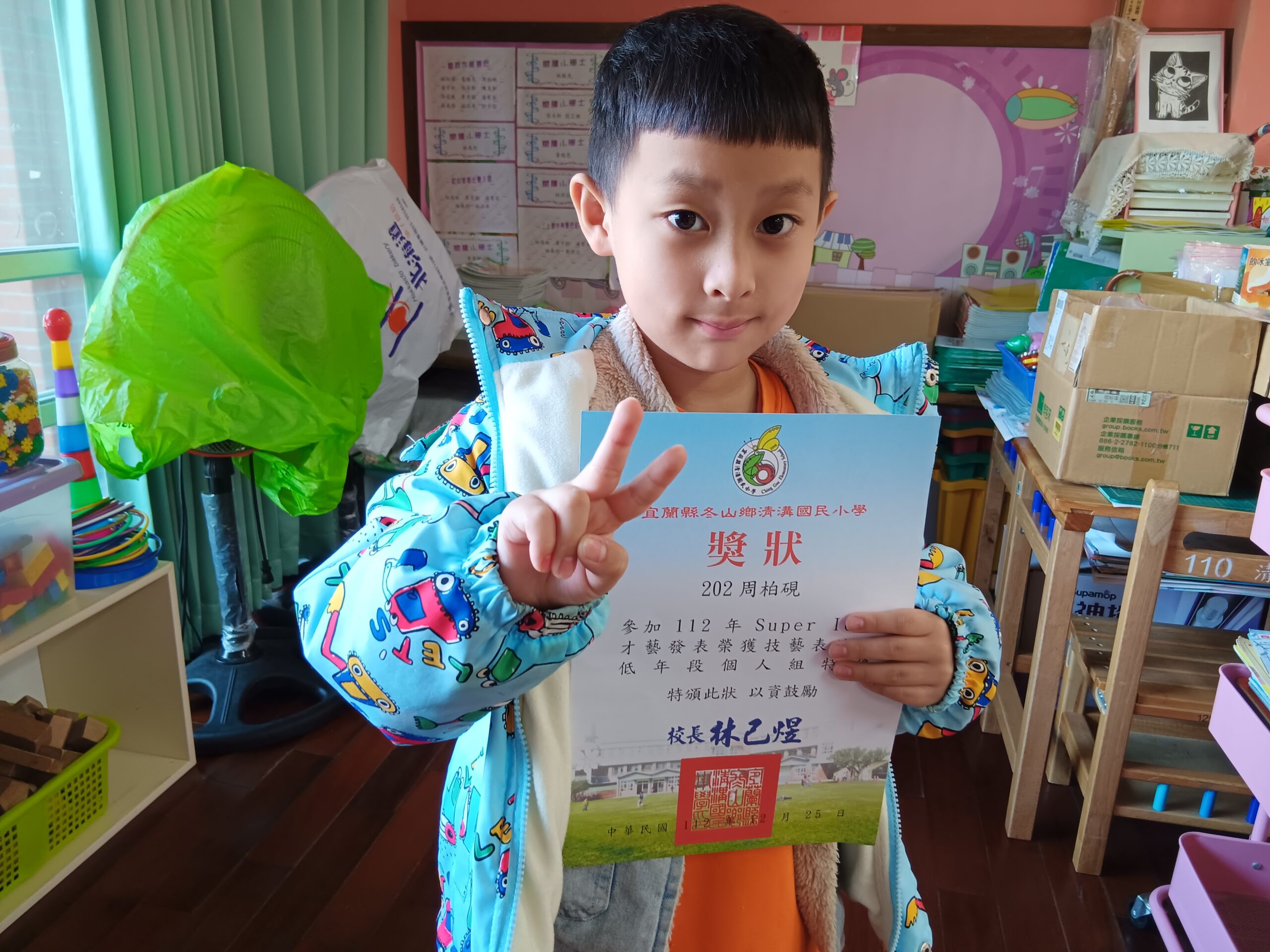 學生才藝表演頒獎2024 年 1 月 3 日2024 年 1 月 3 日 林冠妙週二學生朝會,學校頒發學生才藝表演獎項,我們班柏硯的空手道表演得到特優,易廷、楷恩、煜喆、宸愷、宥安、亭穎的扯鈴表演得到優等,真是太厲害了!恭喜這些努練習、表現優異的選手們!