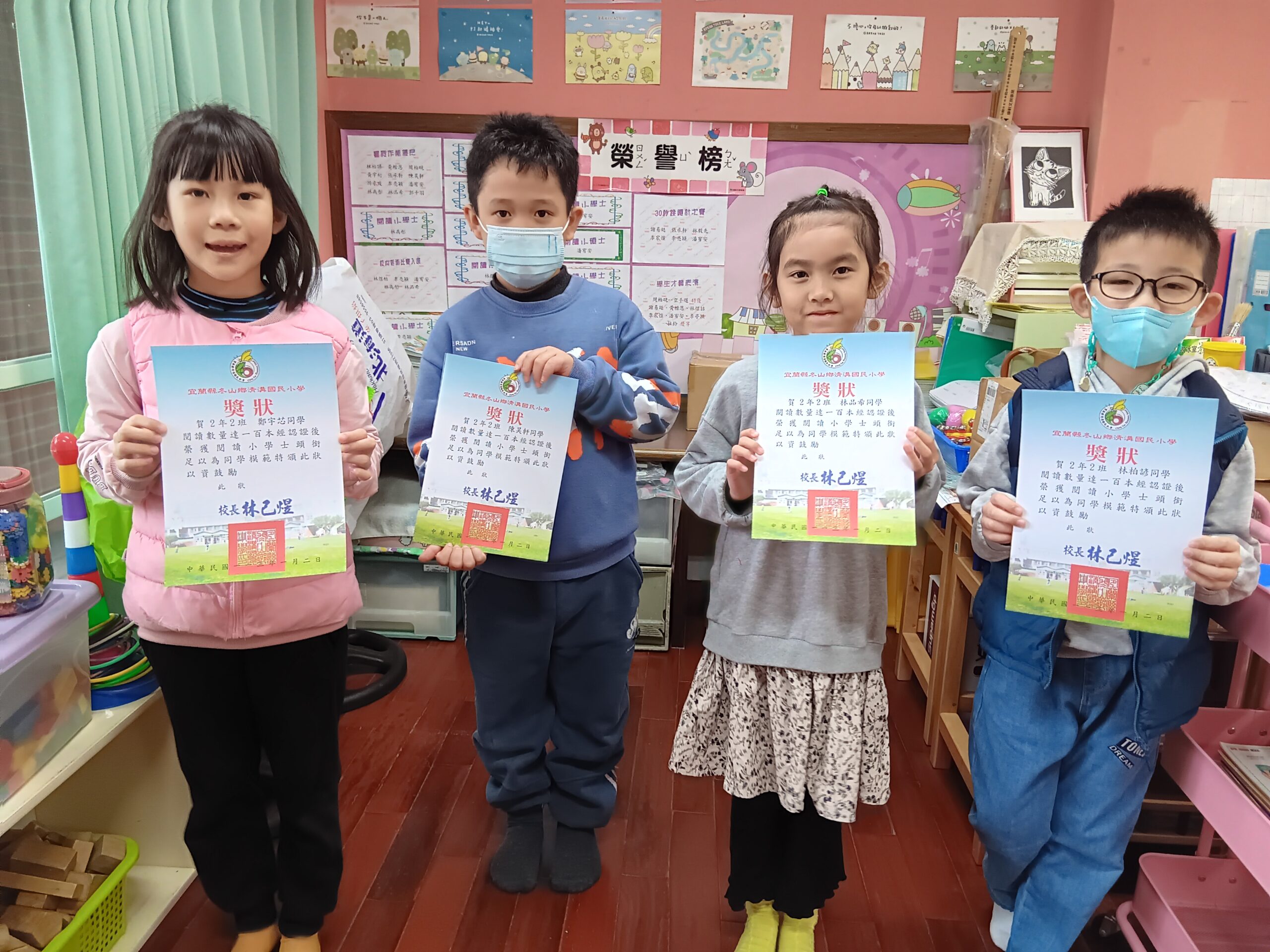 期末頒獎2024 年 1 月 19 日2024 年 1 月 19 日 林冠妙今天是二年級上課最後一天,明天就是快樂的寒假了,學校頒發許多獎狀給表現優良的小朋友,恭喜獲獎同學,希望大家二年級下學期表現愈來愈進步!以下是得獎名單:期末考試前五名:煜喆、宇桁、宥安、禹彤、宇芯 進步獎:昊軒、僅棠 國語領域表現優異:易廷 數學領域表現優異:承軒英語領域表現優異:品希 閩南語領域表現優異:楷恩健體領域表現優異:亭穎 生活領域表現優異:宸語 閱讀小學士:僅棠