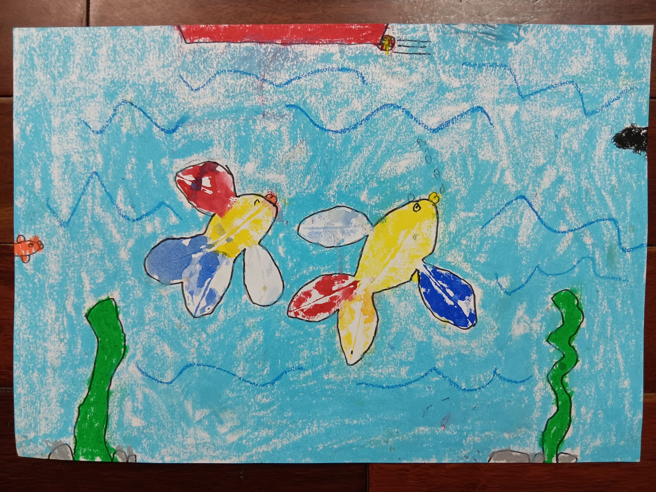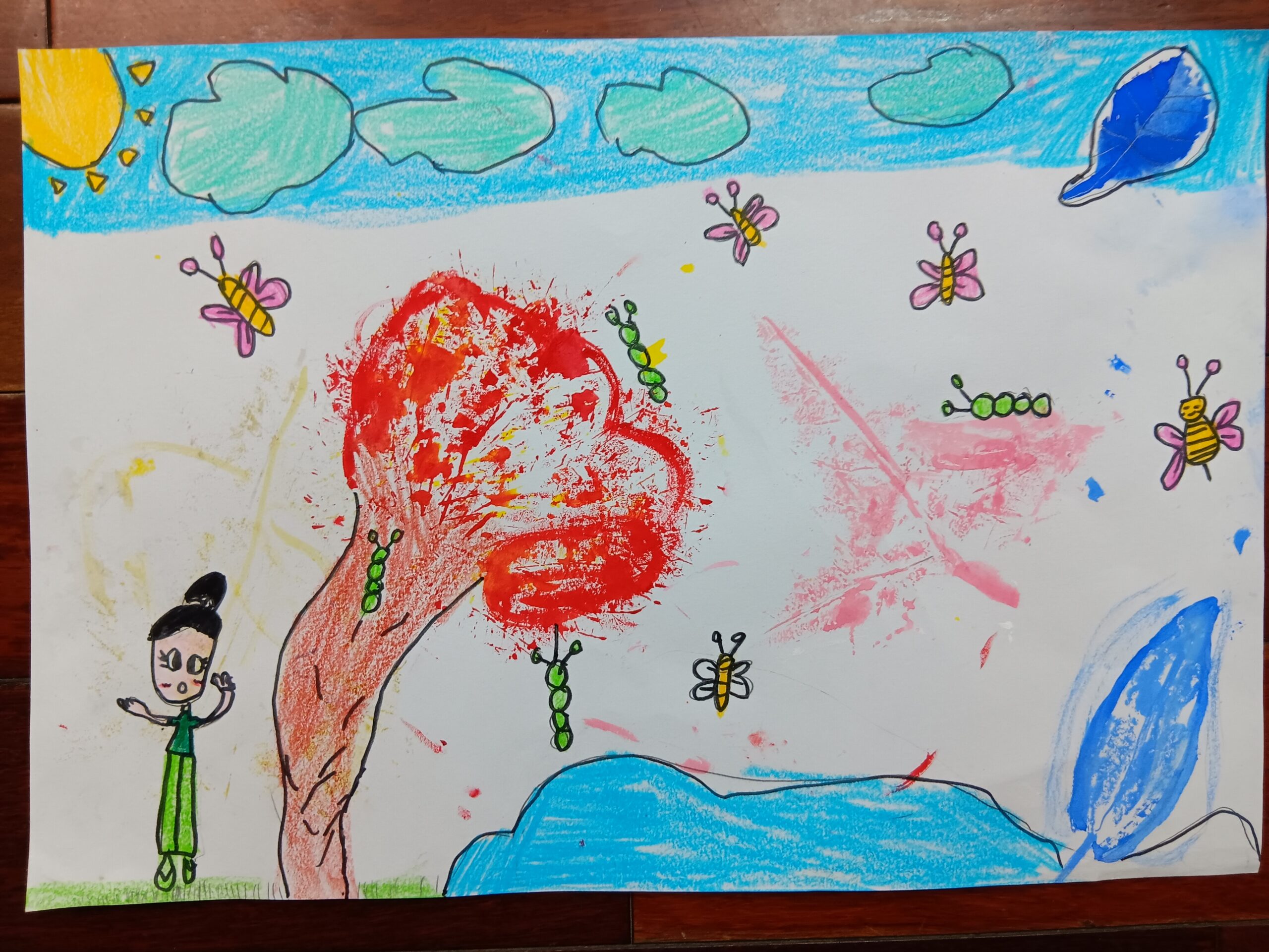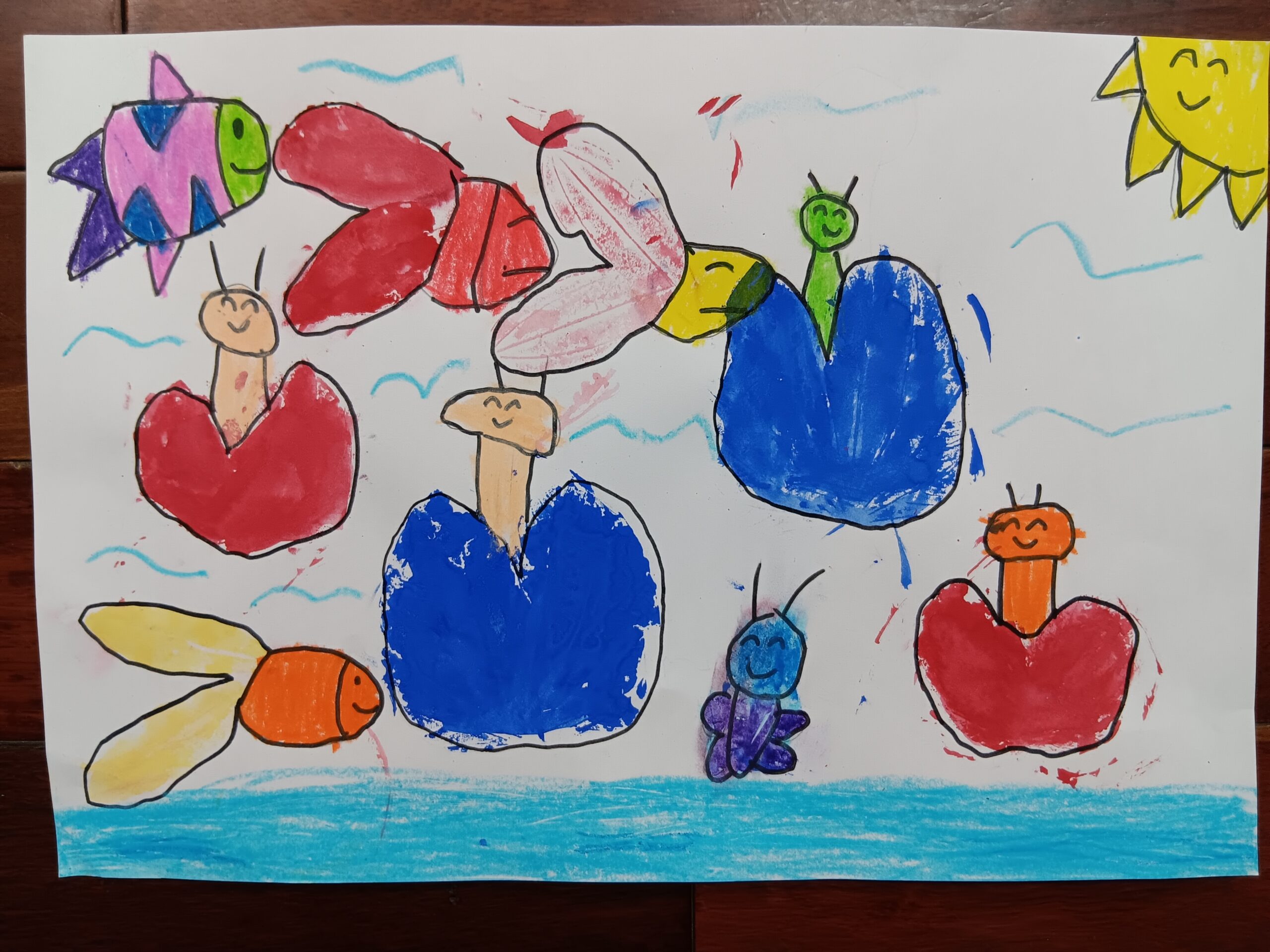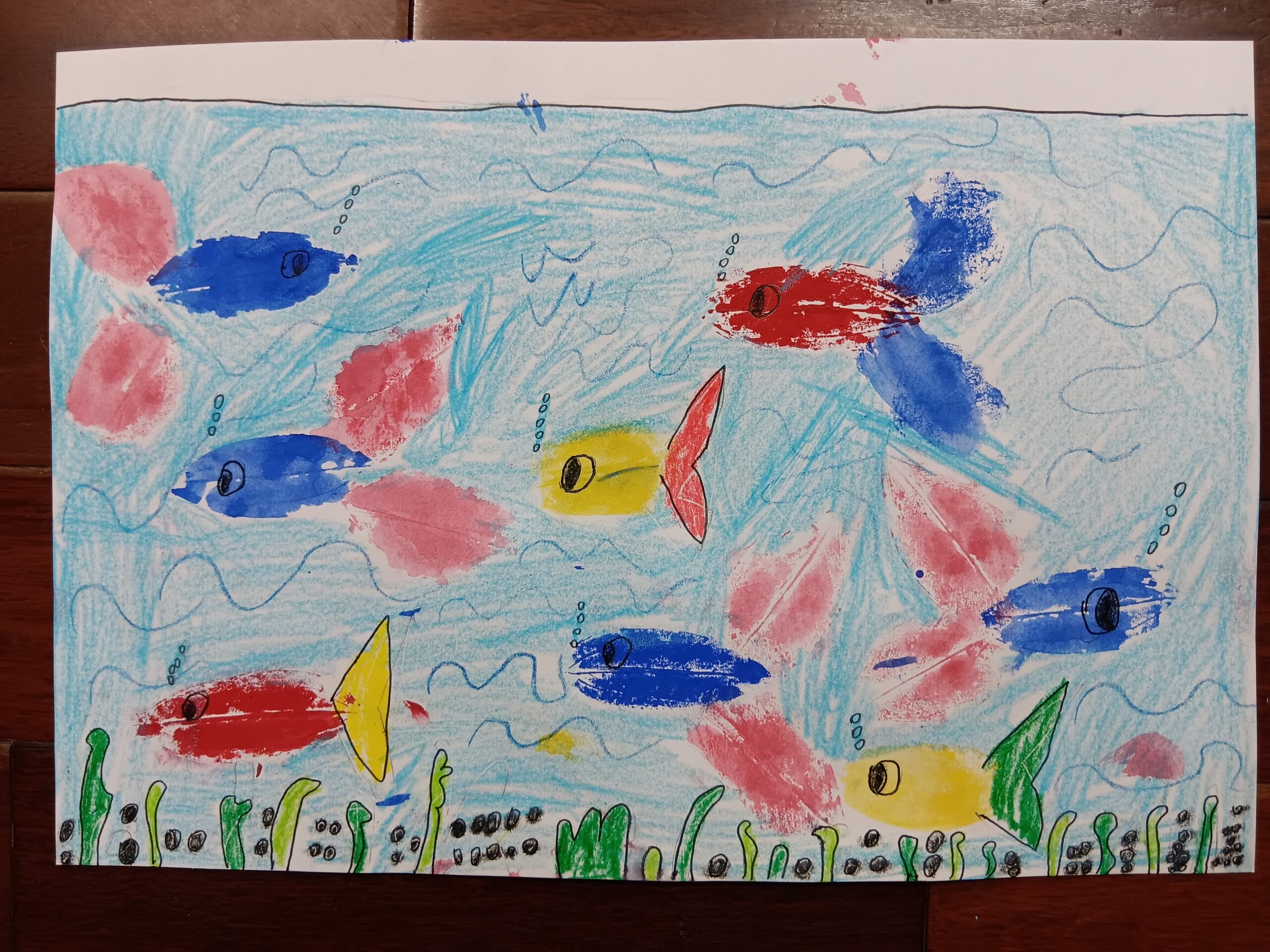 葉子拓印創意畫2024 年 1 月 10 日 林冠妙昨天老師帶小朋友到校園撿各種不同形狀的落葉,今天老師教小朋友在葉子塗上水彩,將葉脈拓印在圖畫紙上,再用拓印的葉子創作拓印畫。小朋友想像力很豐富,各種不同形狀、大小的葉子設計成魚、獅子、蝴蝶、大樹、高山、海洋生物……等,鮮豔的色彩讓圖畫變得更生動了!小朋友的創作很棒喔!