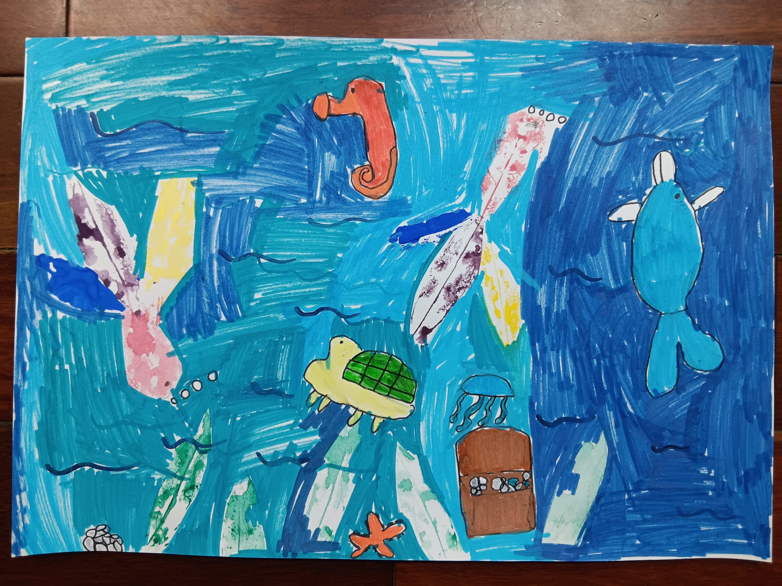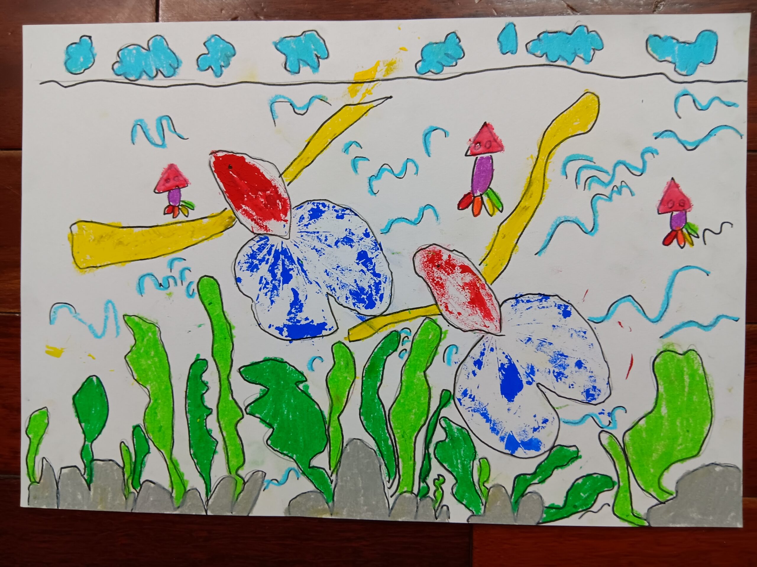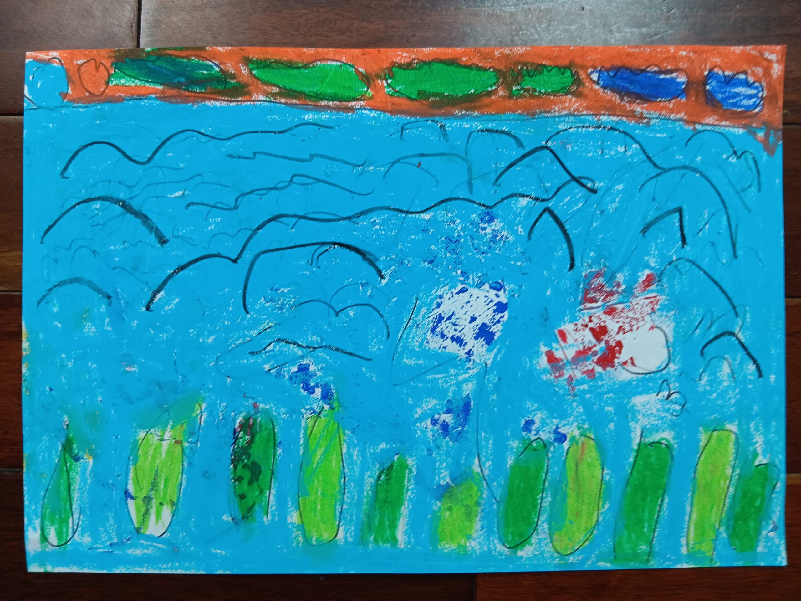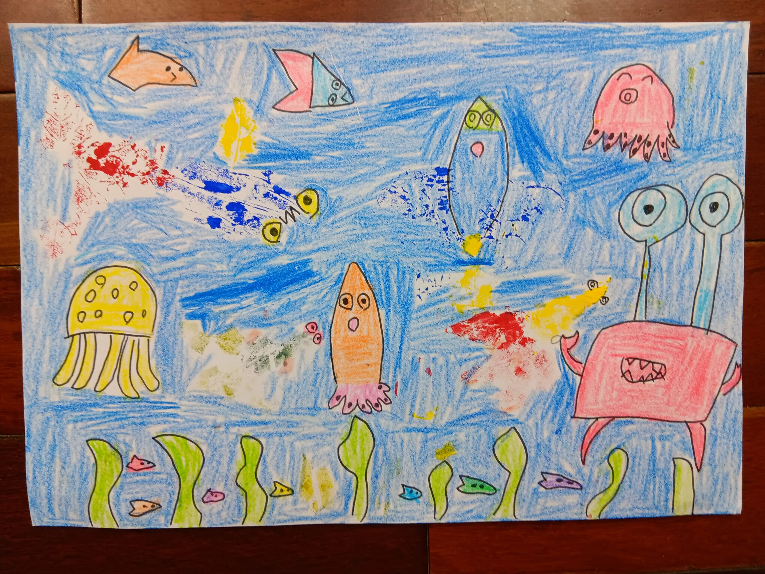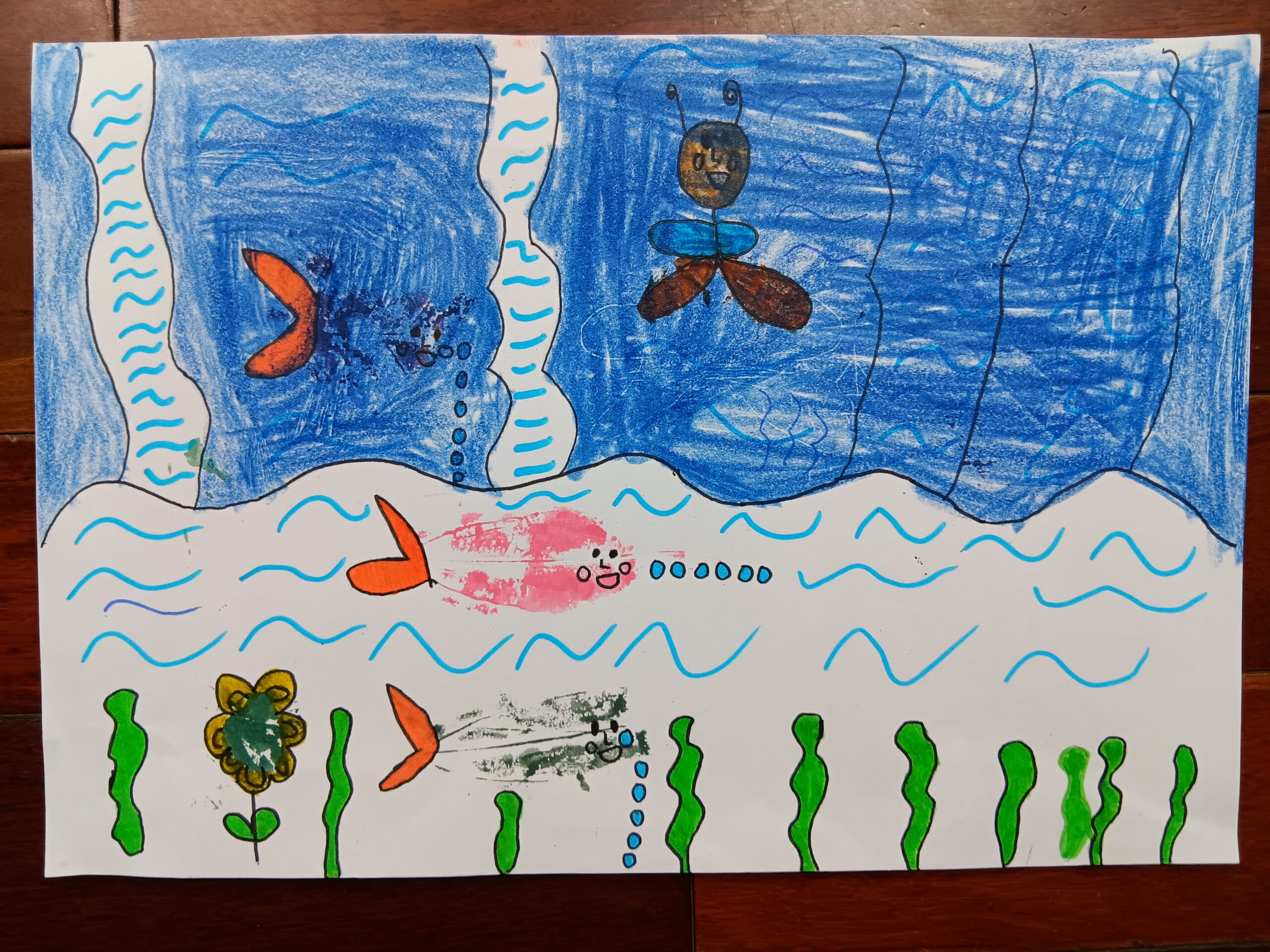 葉子拓印創意畫2024 年 1 月 10 日 林冠妙昨天老師帶小朋友到校園撿各種不同形狀的落葉,今天老師教小朋友在葉子塗上水彩,將葉脈拓印在圖畫紙上,再用拓印的葉子創作拓印畫。小朋友想像力很豐富,各種不同形狀、大小的葉子設計成魚、獅子、蝴蝶、大樹、高山、海洋生物……等,鮮豔的色彩讓圖畫變得更生動了!小朋友的創作很棒喔!