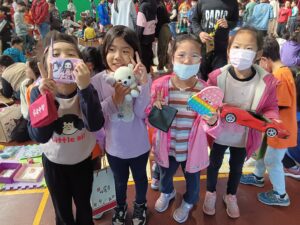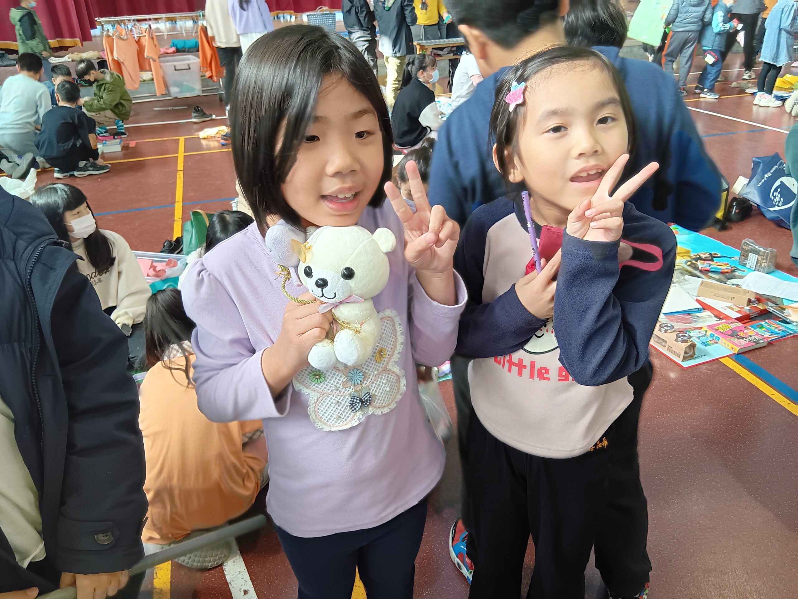 跳蚤市場2024 年 1 月 18 日 林冠妙今天學校舉辦跳蚤市場,小朋友在跳蚤市場中找到自己喜歡的東西,無論是玩偶、玩具、文具…,都物超所值,每個買到東西的小朋友都開心的展示「戰利品」。學校辦的跳蚤市場活動,不只是環保資源再利用,而是讓小朋友學習如何當個善於推銷的老闆,和懂得善用金錢的消費者,今天大家玩得好開心啊!