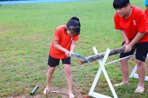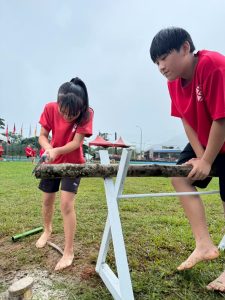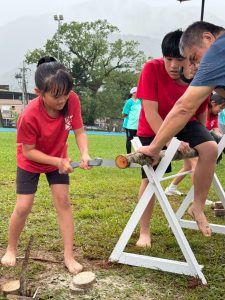 活動中有有趣的鋸木比賽,