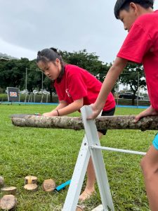 活動中有有趣的鋸木比賽,