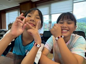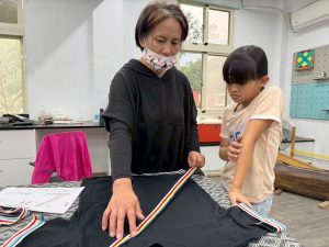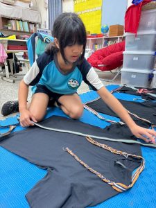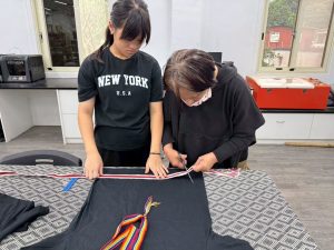 每個同學都把自製的織帶裝飾在 T 恤上,變成獨一無二的服飾。