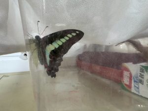 經過一個多月的等待,牠終於順利羽化成美麗的青帶鳳蝶。