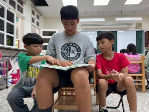 我們帶著自己創作的故事,到低年級的弟弟妹妹面前說故事。