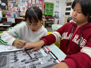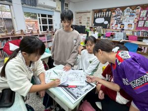 ⮕高年級學生互相分享工作本。