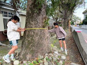 ⮕學生測量校園樹木胸圍,