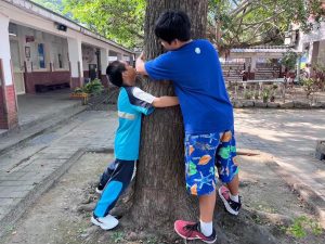 擁抱樟樹的樹幹、聽樟樹的心聲。
