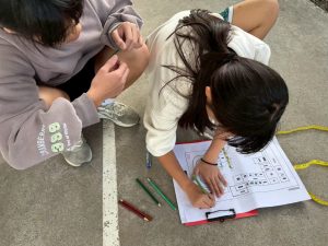 ⮕學生測量校園樹木胸圍,
