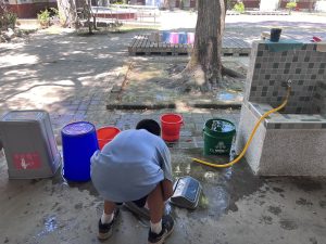 刷洗垃圾桶的那天,教室外了水龍頭剛好壞了,水流個不停,