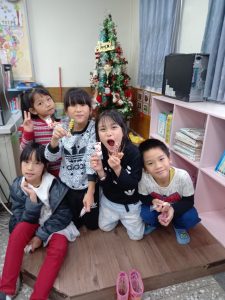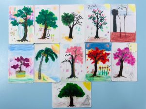 我們和四年級的學弟妹們一起完成了樹卡的創作。