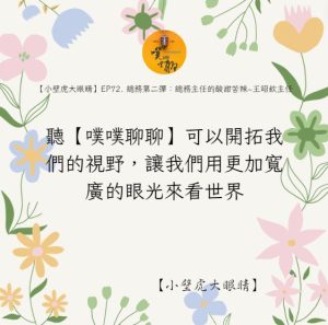 聽【噗噗聊聊】可以開拓我們的視野,讓我們用更加寬廣的眼光來看世界。