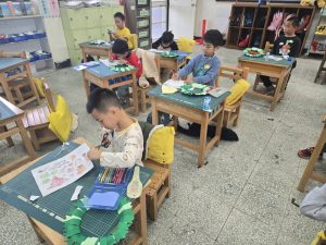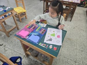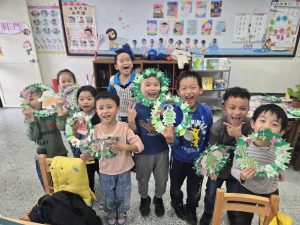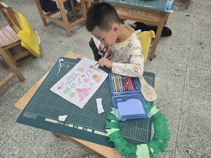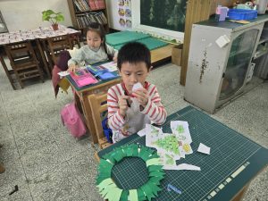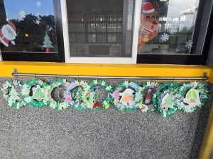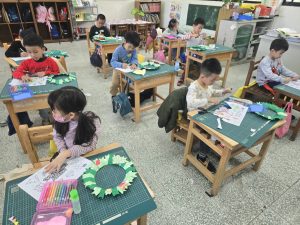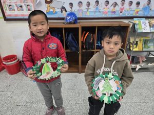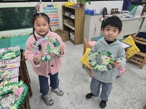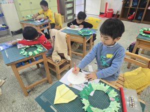 每一個花圈都裝滿了認真和笑容,教室裡也充滿了聖誕節的溫暖和期待。