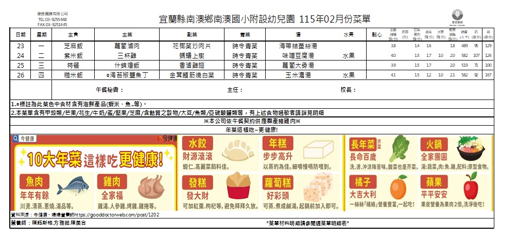 • 115年2月份餐點表