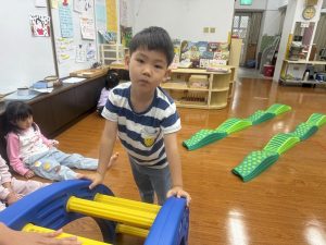 大肌肉活動~運動身體好,運用不同體能器材增進臂肌力、敏捷性、協調性及抓握等方面的能力,前庭刺激下肢肌耐力協調穩定性