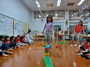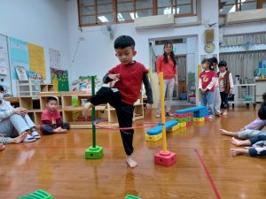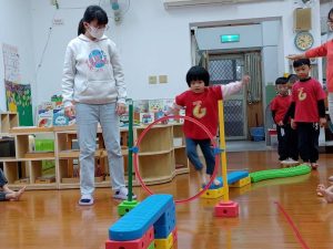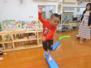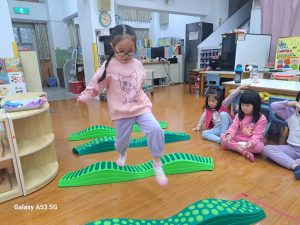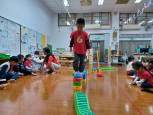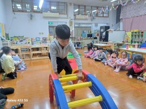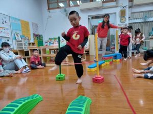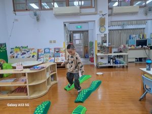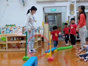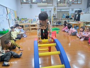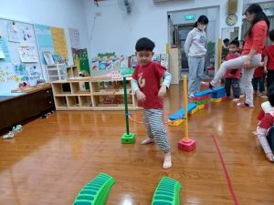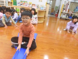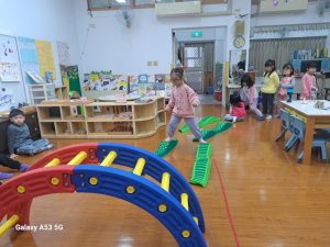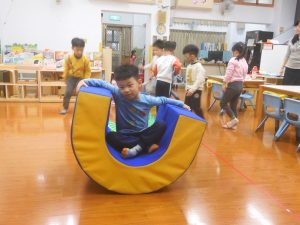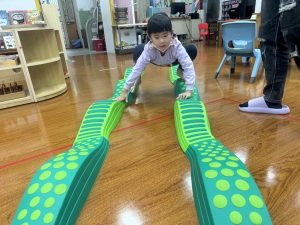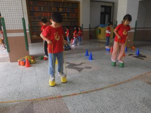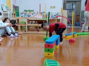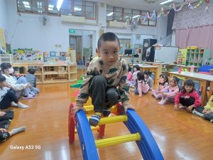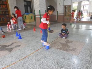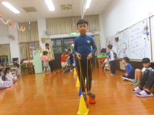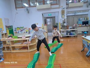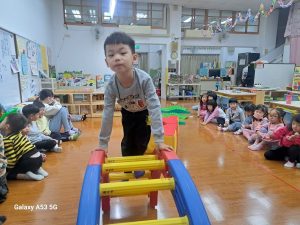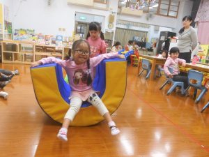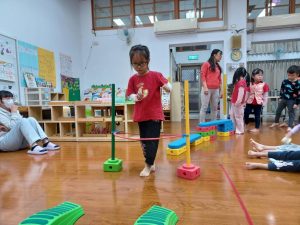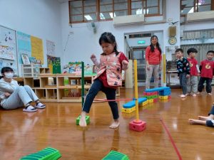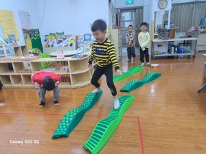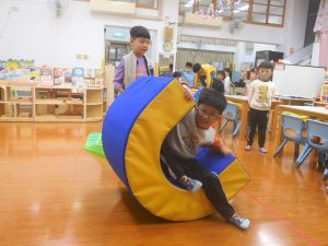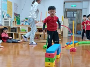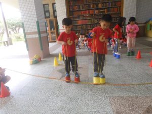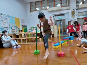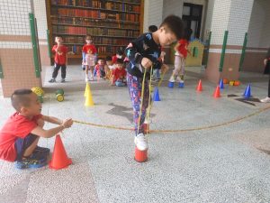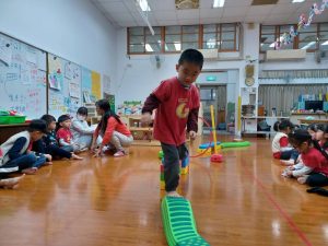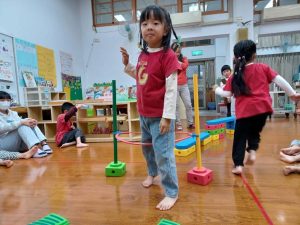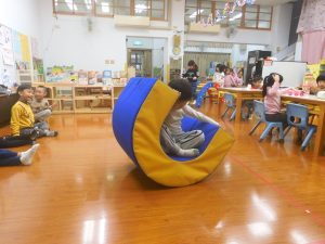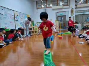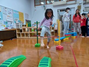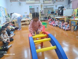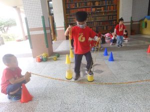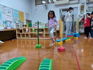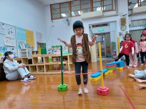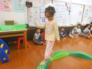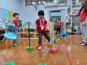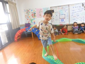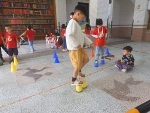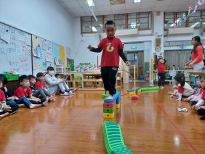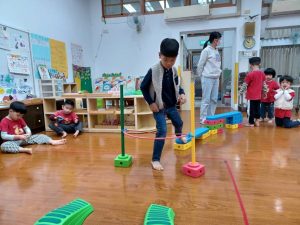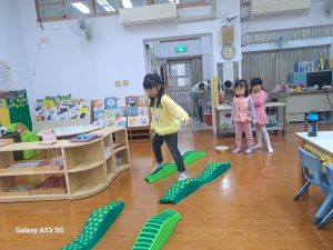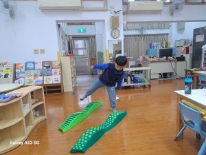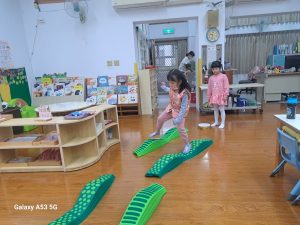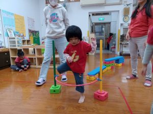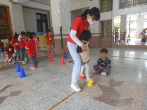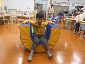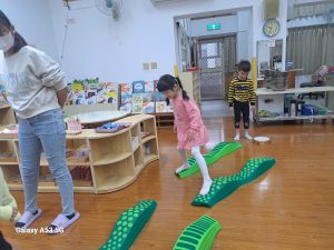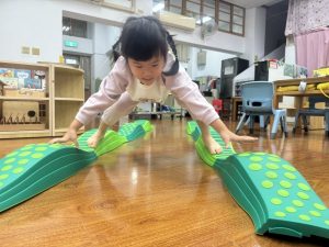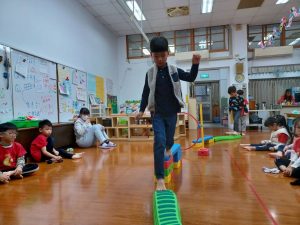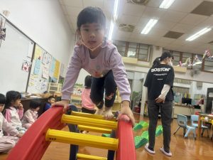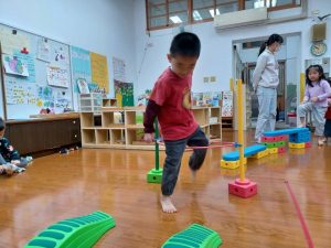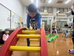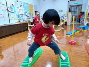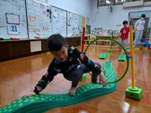 大肌肉活動~運動身體好,運用不同體能器材增進臂肌力、敏捷性、協調性及抓握等方面的能力,前庭刺激下肢肌耐力協調穩定性