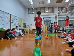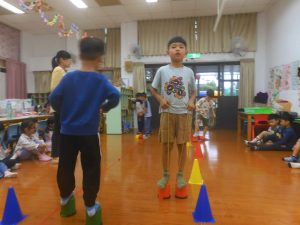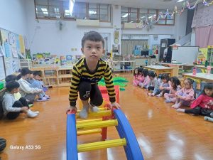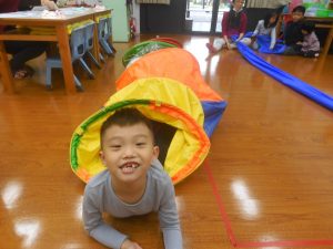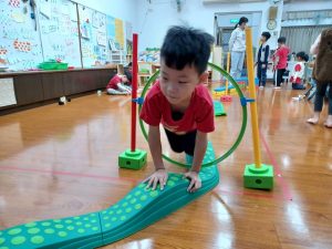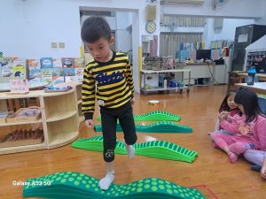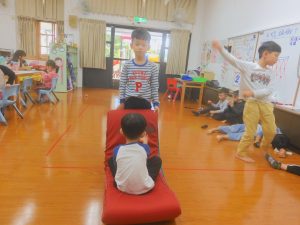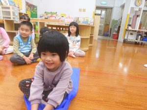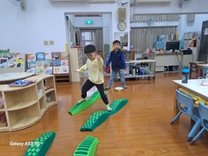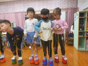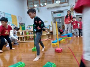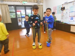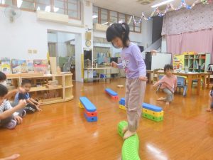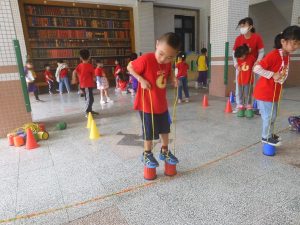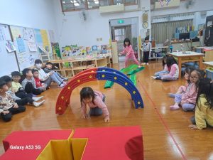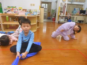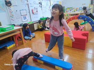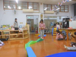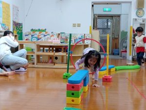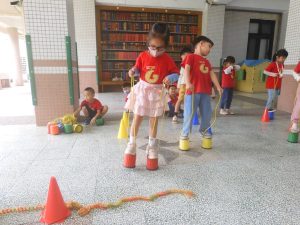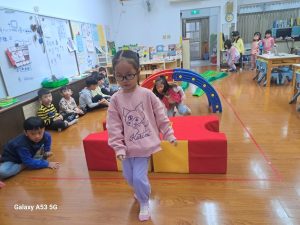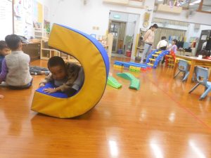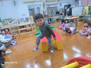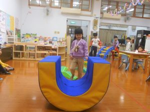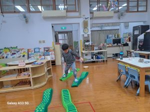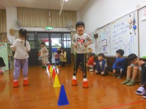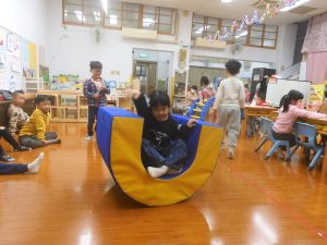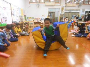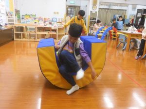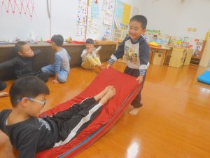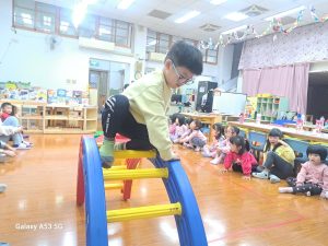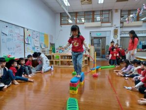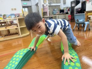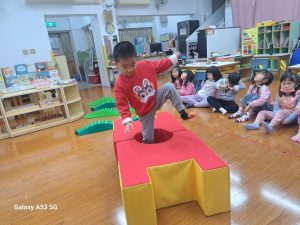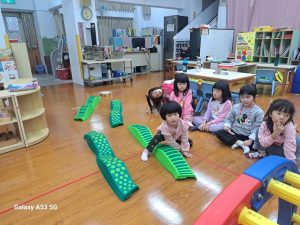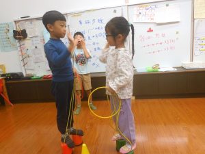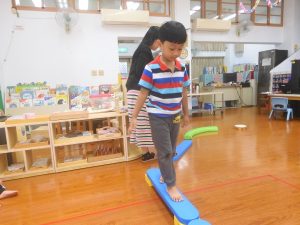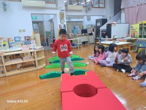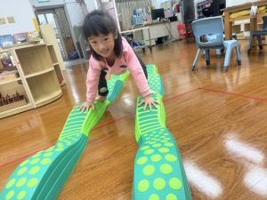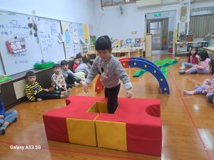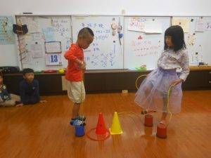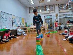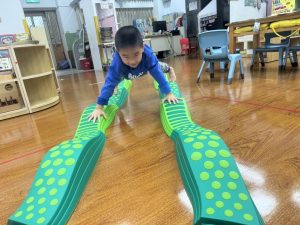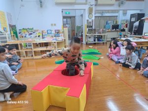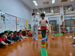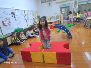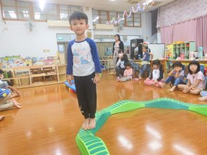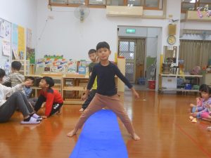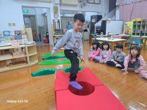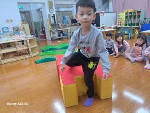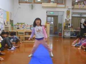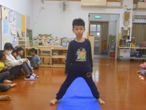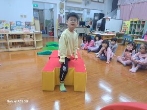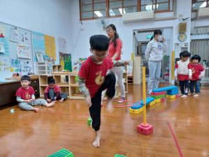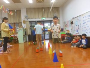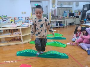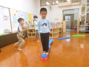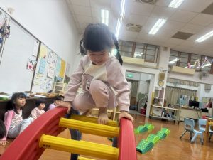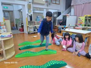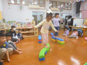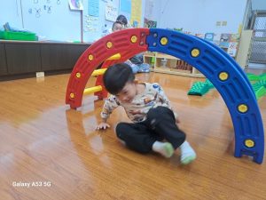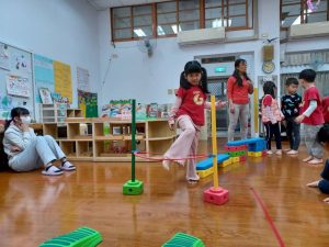 大肌肉活動~運動身體好,運用不同體能器材增進臂肌力、敏捷性、協調性及抓握等方面的能力,前庭刺激下肢肌耐力協調穩定性