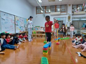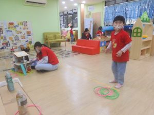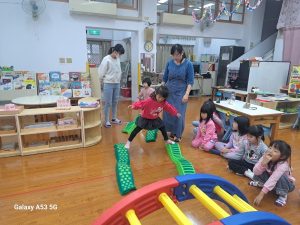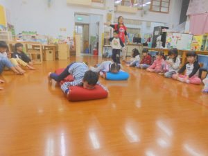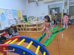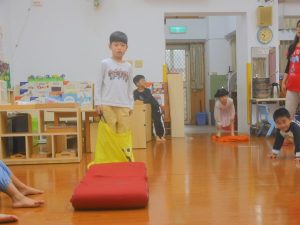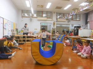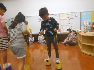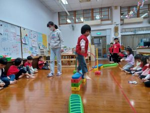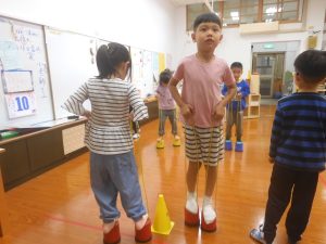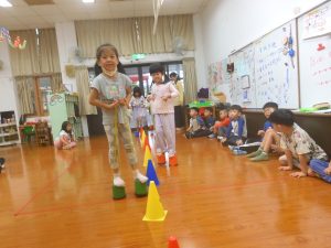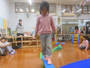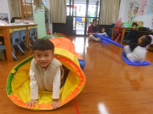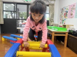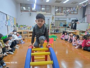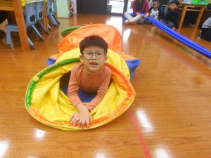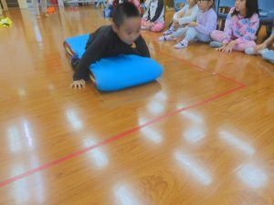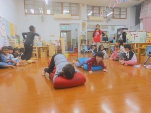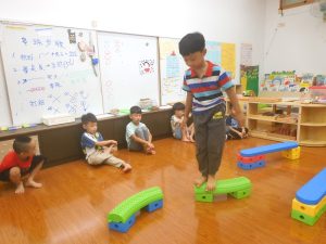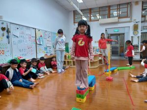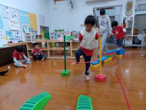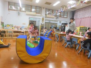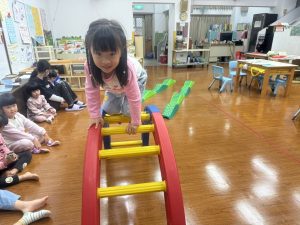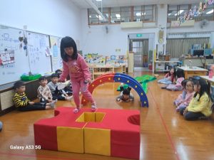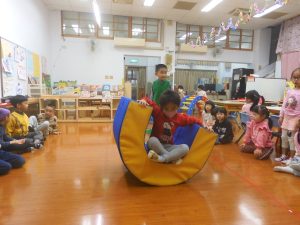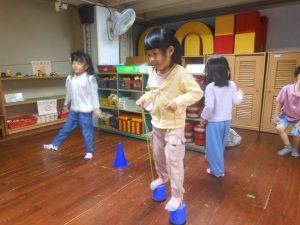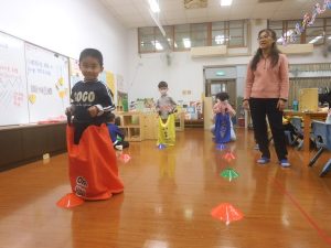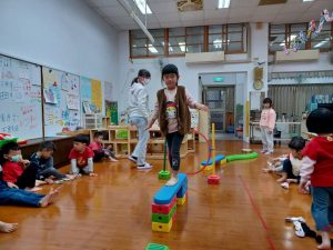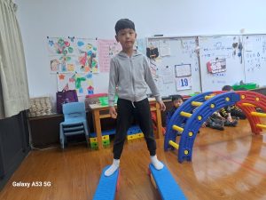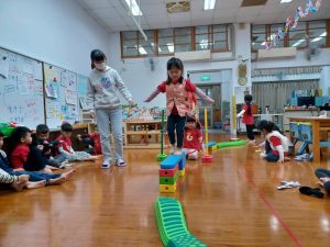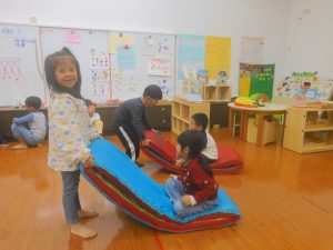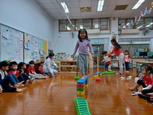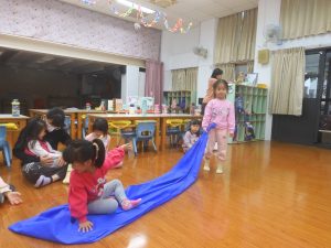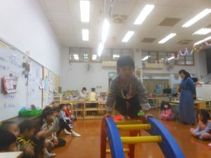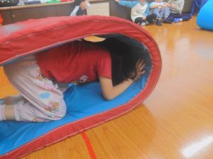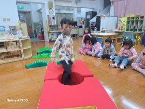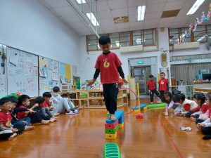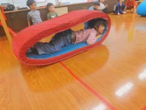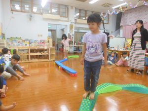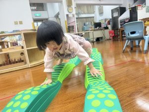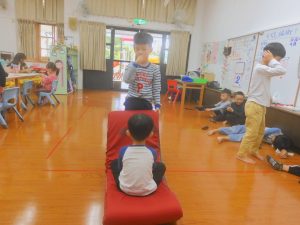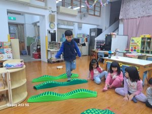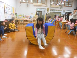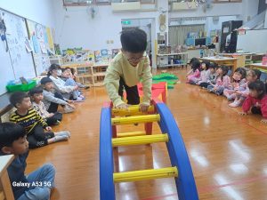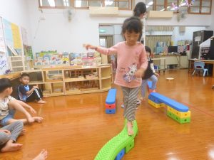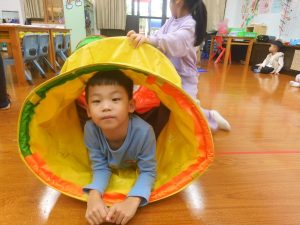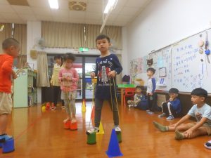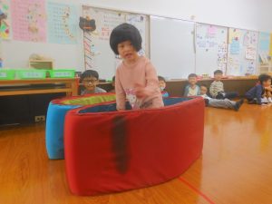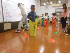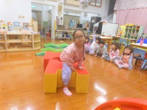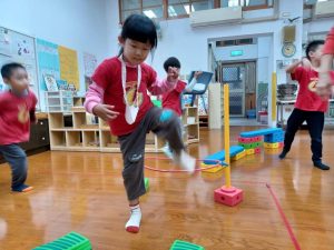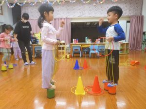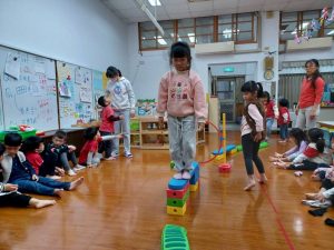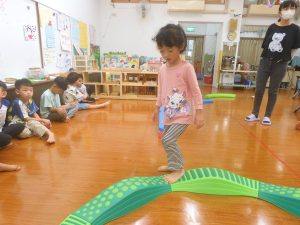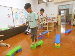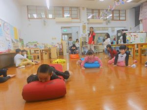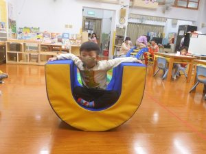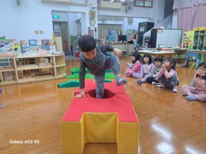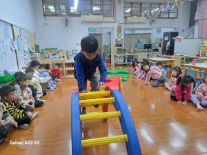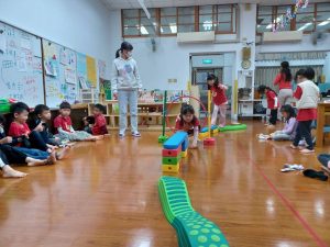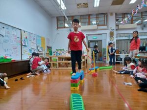 大肌肉活動~運動身體好,運用不同體能器材增進臂肌力、敏捷性、協調性及抓握等方面的能力,前庭刺激下肢肌耐力協調穩定性