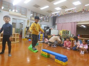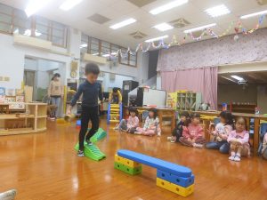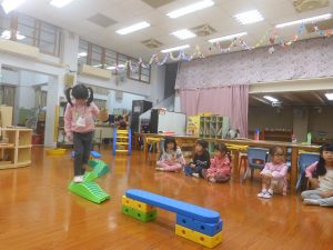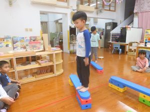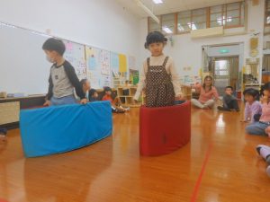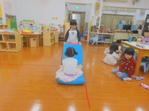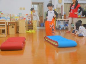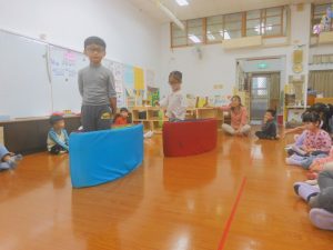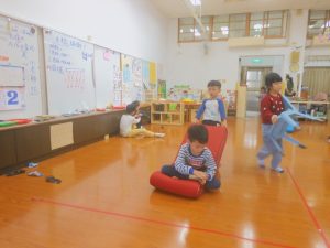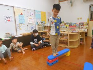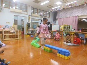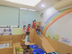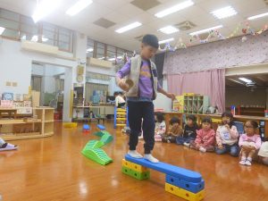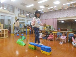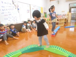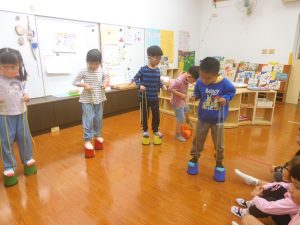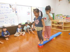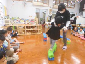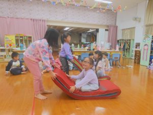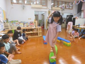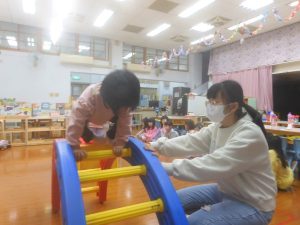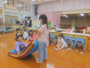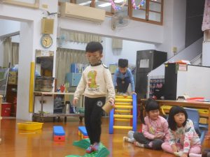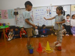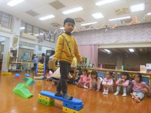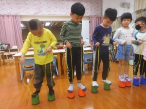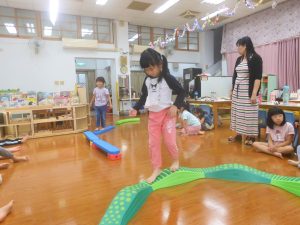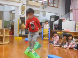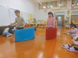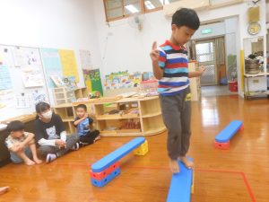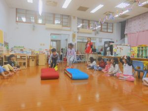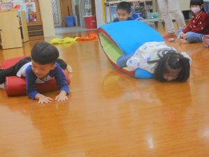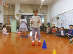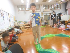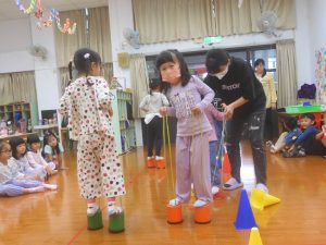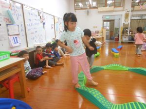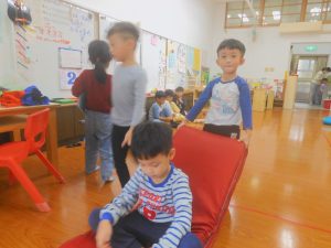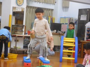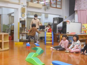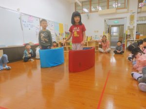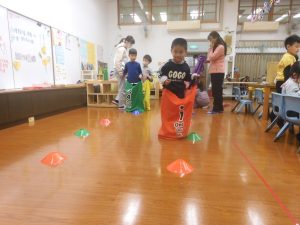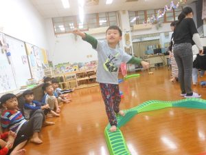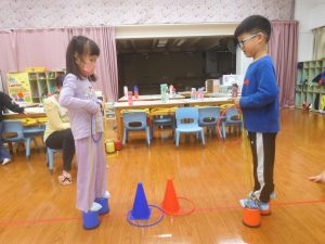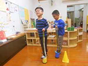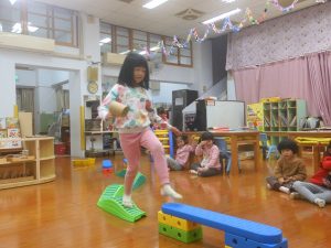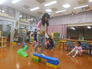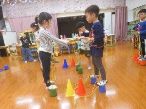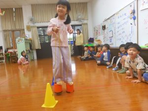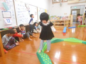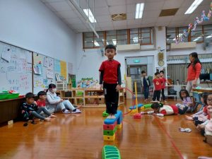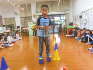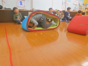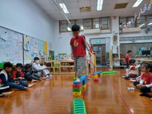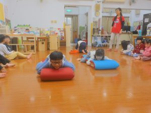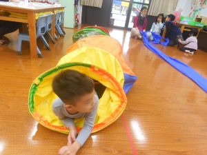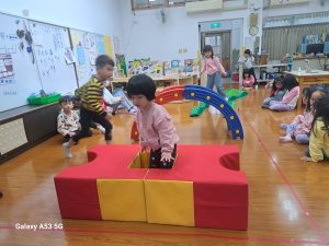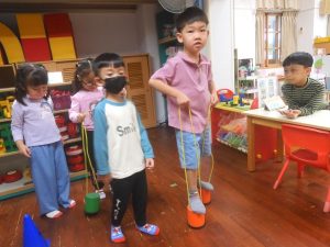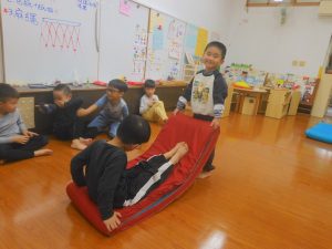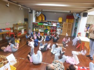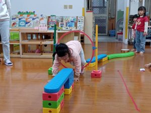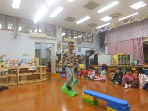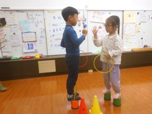 大肌肉活動~運動身體好,運用不同體能器材增進臂肌力、敏捷性、協調性及抓握等方面的能力,前庭刺激下肢肌耐力協調穩定性