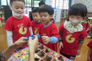 『顏色大冒險』,主要是希望提升幼兒對顏色的認知,透過觀察、遊戲的方式,讓幼兒願意主動去探索。我們從幼兒最喜歡的顏色進入主題,看看自己身上的顏色,找找別人身上的顏色,還有觀察哪裡有指定顏色的生活物件