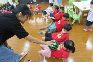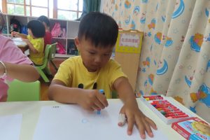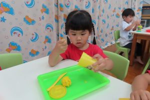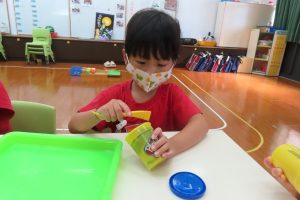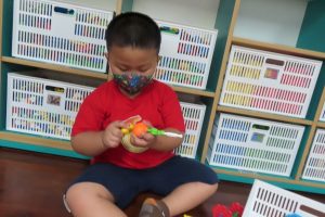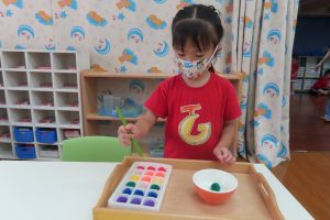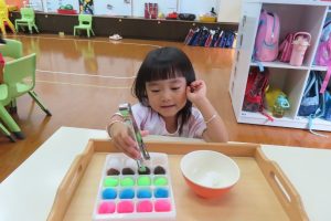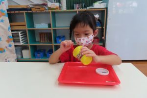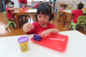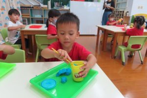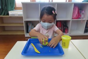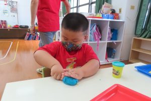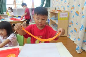 大肌肉運動利用彩色軟球玩了許多認識顏色的遊戲