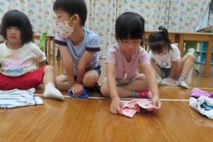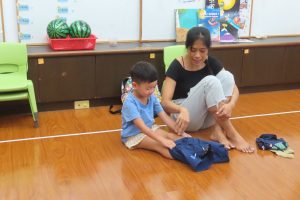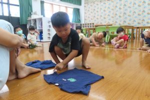 孩子開始熟悉太陽班的一日作息,我們將孩子還不太熟練的生活自理(上廁所/洗手;鋪棉被/摺棉被)透過討論及實作的方式,逐一練習,小太陽們都很認真,一起幫我們加油喔!