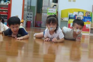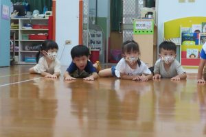 防震演練~我有乖乖練習怎麼保護自己喔!
