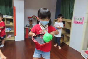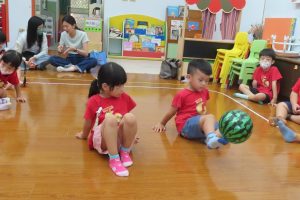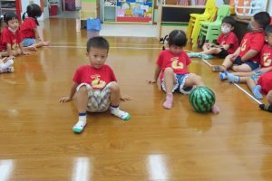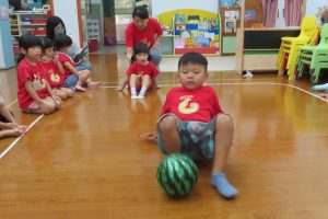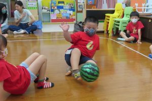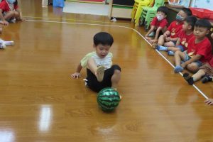 我們玩了推球、丟球、接球、拍球、踢球…..球真好玩