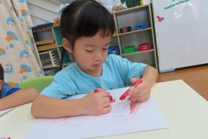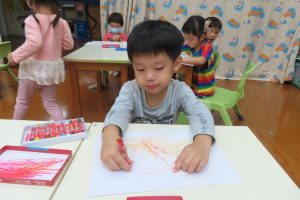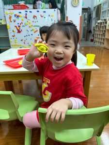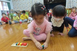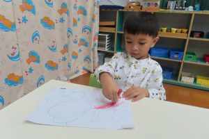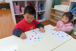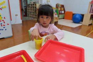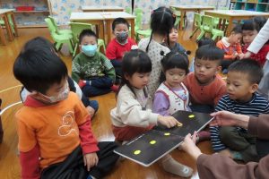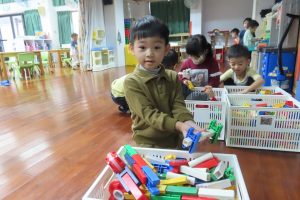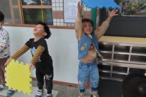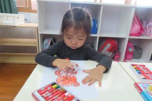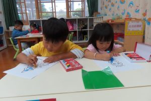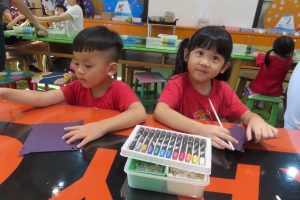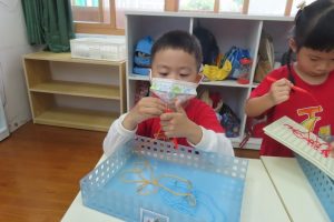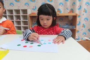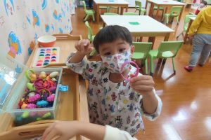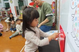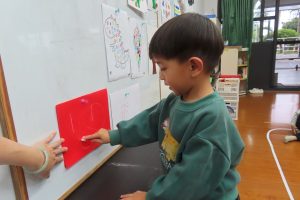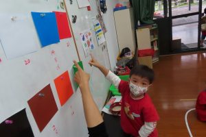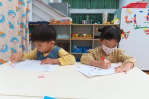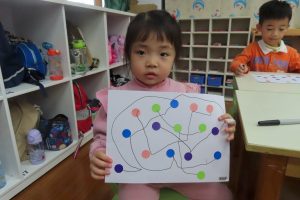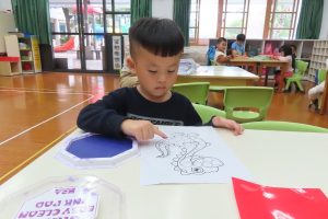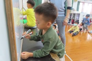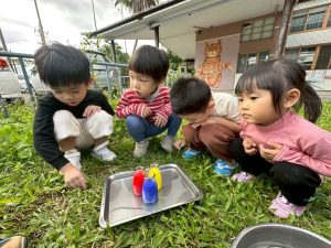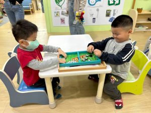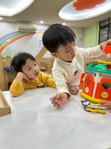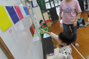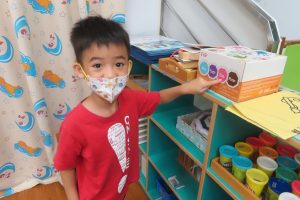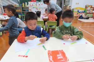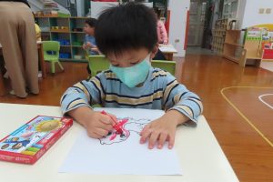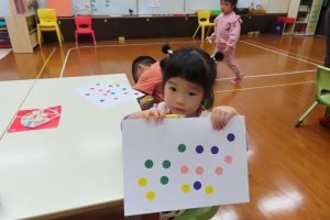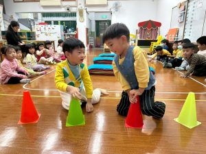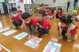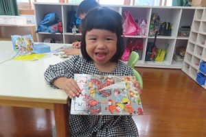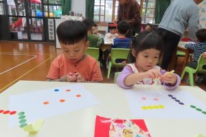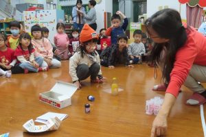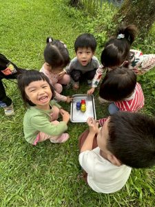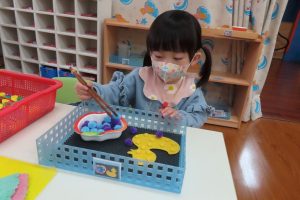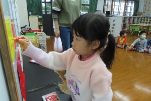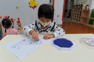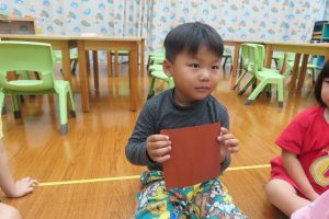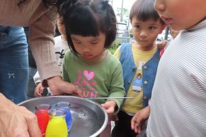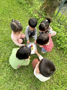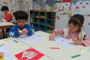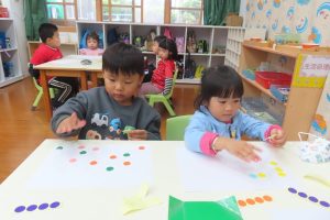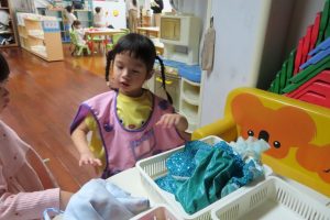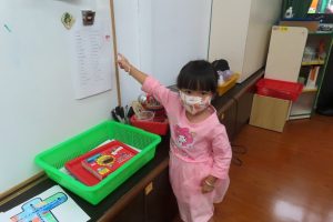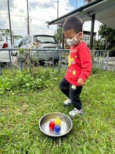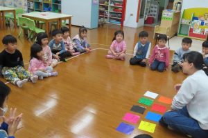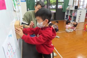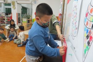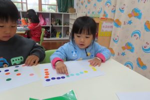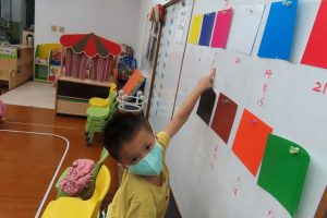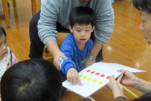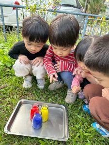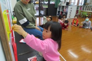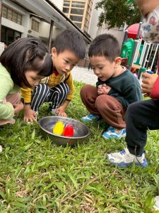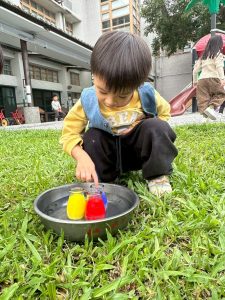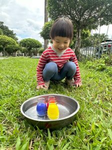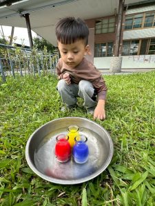 『顏色大冒險』,主要是希望提升幼兒對顏色的認知,透過觀察、遊戲的方式,讓幼兒願意主動去探索。我們從幼兒最喜歡的顏色進入主題,看看自己身上的顏色,找找別人身上的顏色,還有觀察哪裡有指定顏色的生活物件