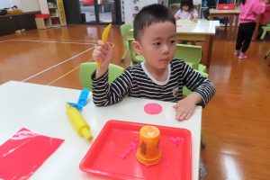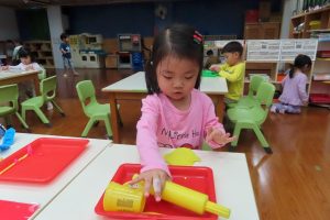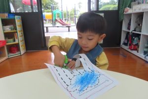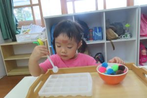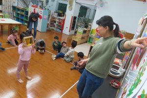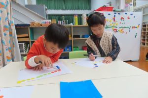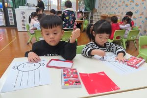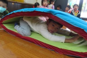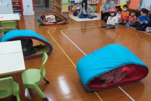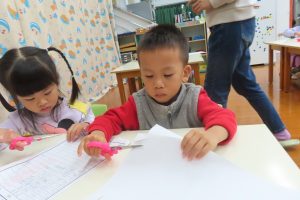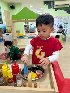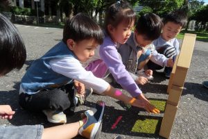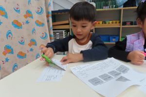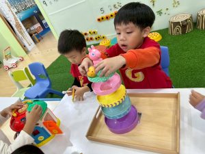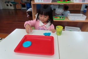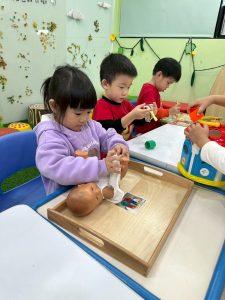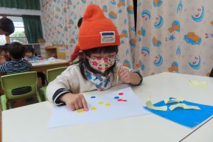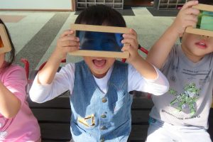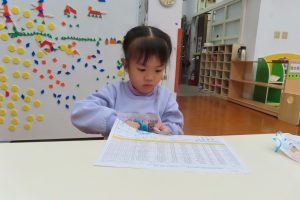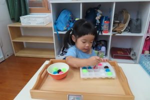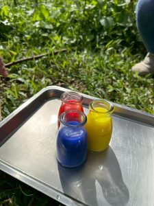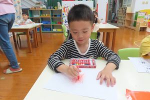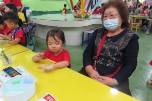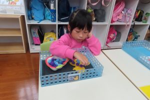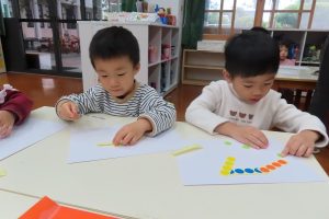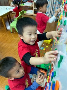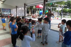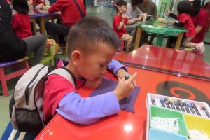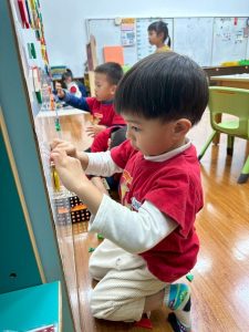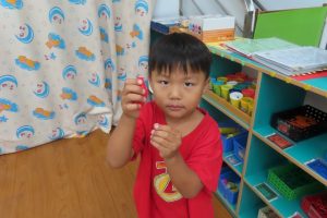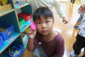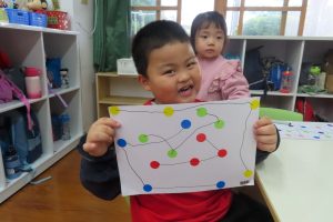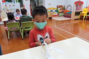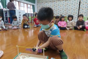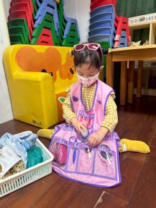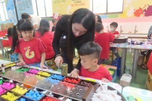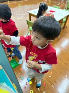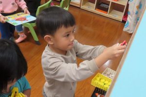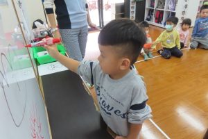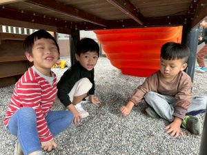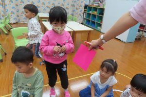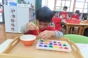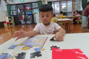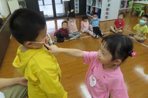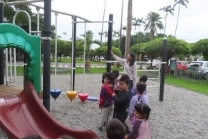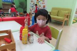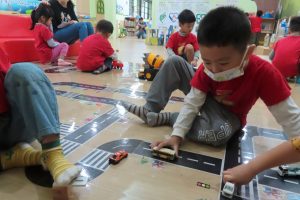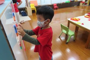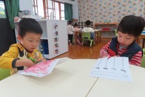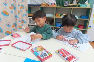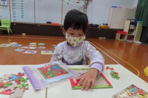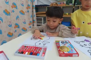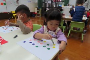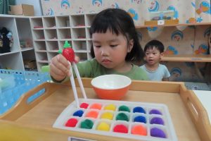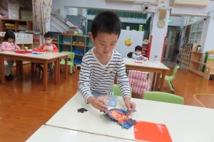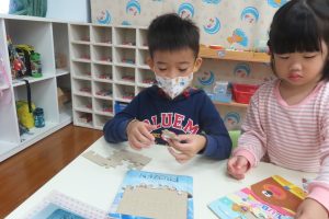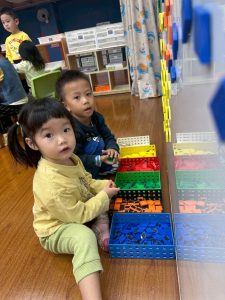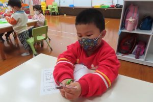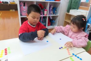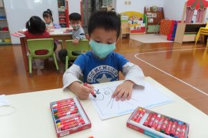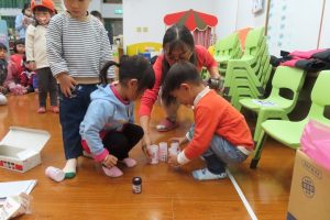 『顏色大冒險』,主要是希望提升幼兒對顏色的認知,透過觀察、遊戲的方式,讓幼兒願意主動去探索。我們從幼兒最喜歡的顏色進入主題,看看自己身上的顏色,找找別人身上的顏色,還有觀察哪裡有指定顏色的生活物件