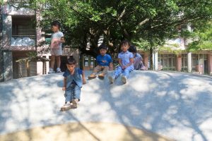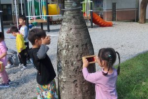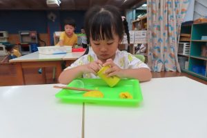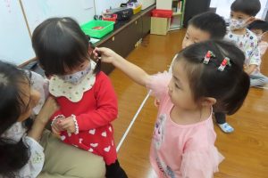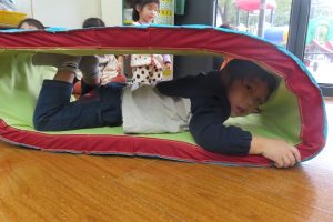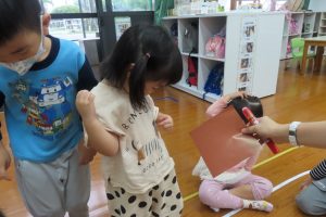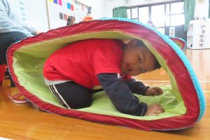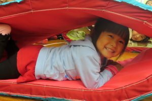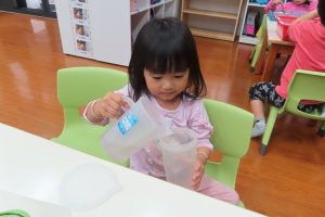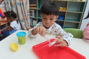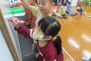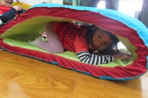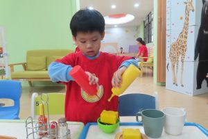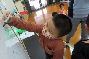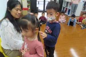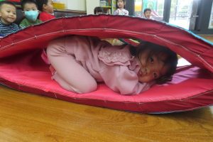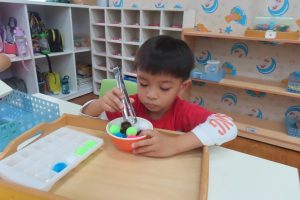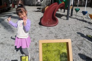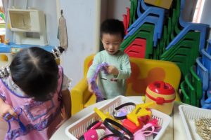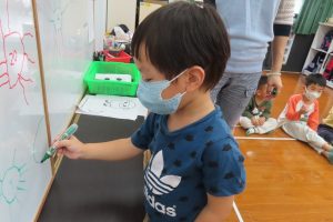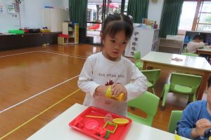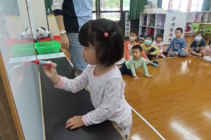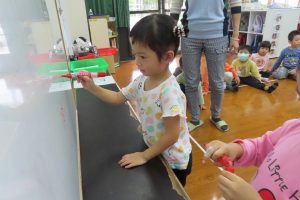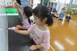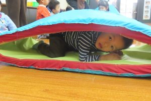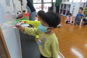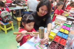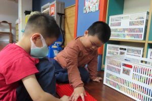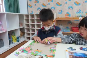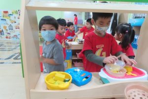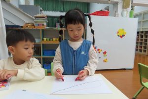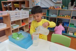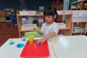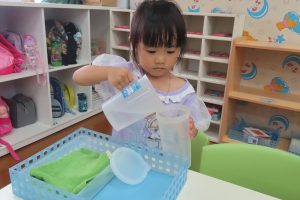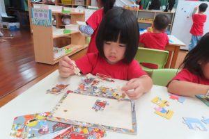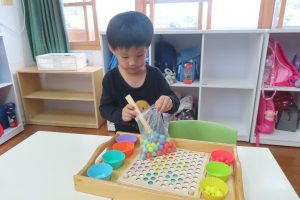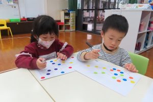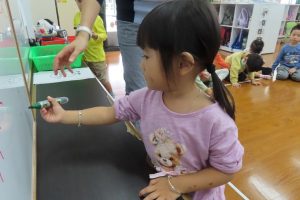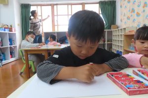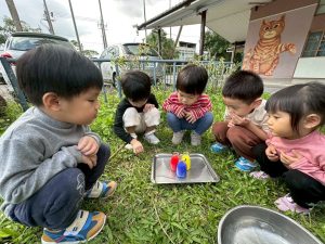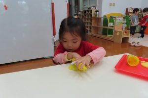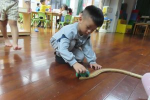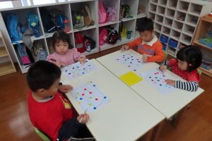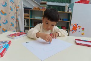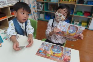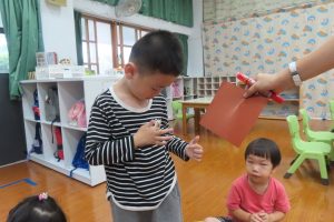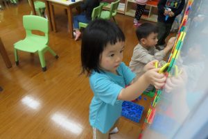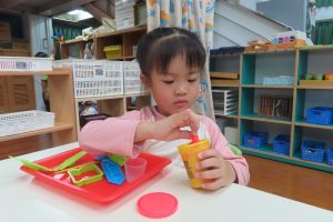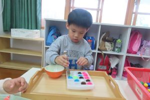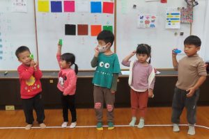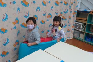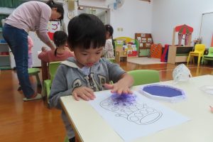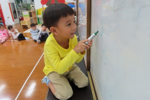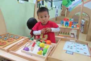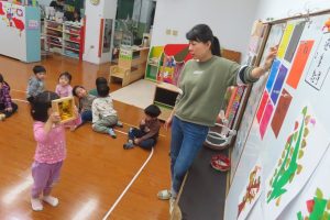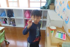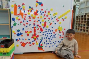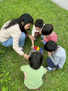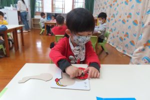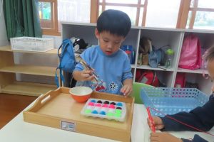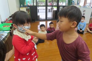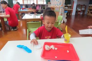 『顏色大冒險』,主要是希望提升幼兒對顏色的認知,透過觀察、遊戲的方式,讓幼兒願意主動去探索。我們從幼兒最喜歡的顏色進入主題,看看自己身上的顏色,找找別人身上的顏色,還有觀察哪裡有指定顏色的生活物件