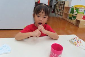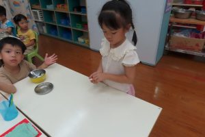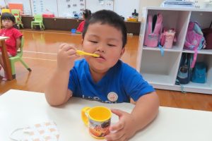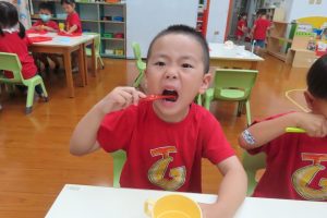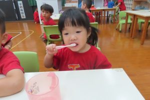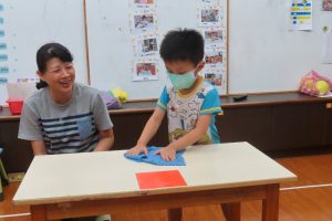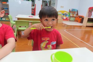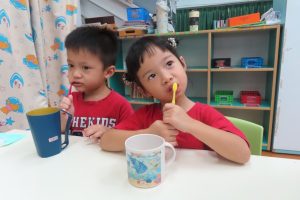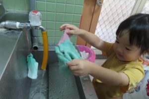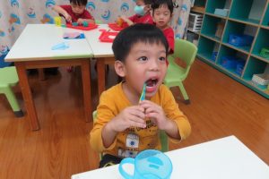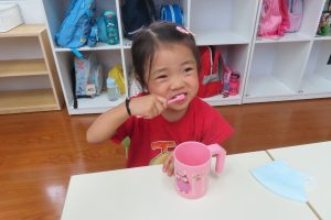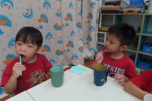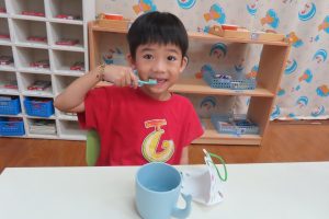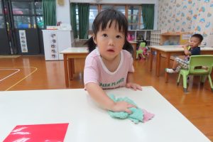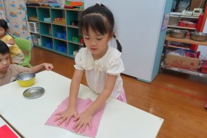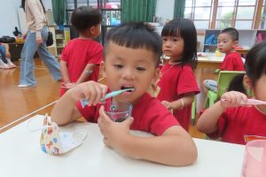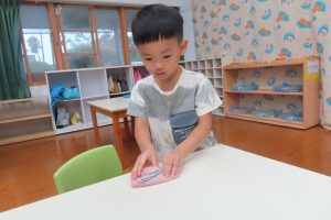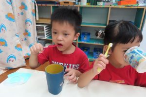 這周我們學習了自己的事自己做—整理自己的用餐環境(桌子、地板)洗抹布及擰乾抹布,也知道怎麼刷牙、怎麼愛護自己的牙齒喔!